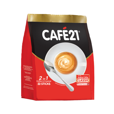 Café21 is the absolute 2 in 1 Instant Coffeemix that gives you the freedom of choice in taste.